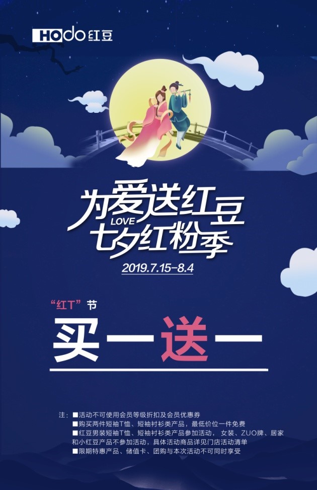 ? ? ? ? 七夕紅粉季,為愛送紅豆,來紅豆男裝選購上衣,舒適百搭的短袖T恤和襯衫為你承包一整夏的清涼。這場夏日七夕的購物狂歡持續進行,其他優惠福利也將陸續揭曉,請查收這份紅豆七夕大禮吧!