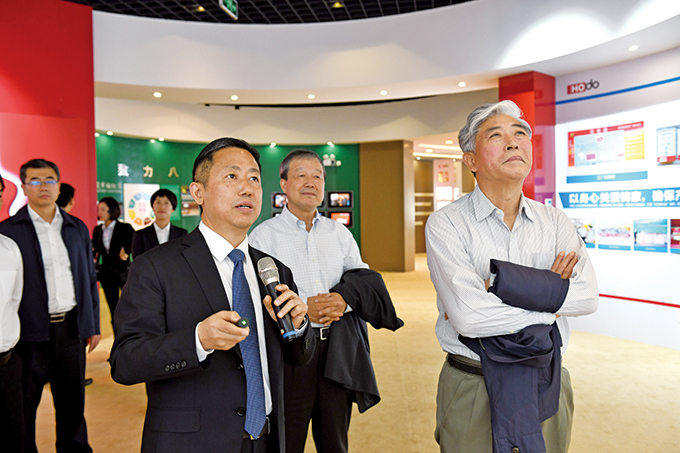 在紅豆黨建館,紅豆集團黨委書記、董事局主席兼CEO周海江介紹了紅豆創立的現代企業制度+企業黨建+社會責任“三位一體”的中國特色現代企業制度、主題教育開展、企業發展等情況。周海江說,企業健康發展、企業人士健康成長,這是黨和國家對民營企業的基本要求,也是廣大民營企業的內在要求。紅豆集團始終堅持黨建引領企業治理,將黨的政治優勢轉化為企業發展優勢,始終堅持“聽黨話、跟黨走,講正氣、走正道”,始終堅持“以人民為中心”的發展理念,不忘初心、牢記使命,致富鄉親、造福社會,實業報國、八方共贏。