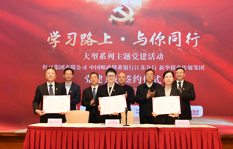 活動上,紅豆集團有限公司、中國郵政儲蓄銀行江蘇分行、新華報業傳媒集團三方舉行了黨建共建簽約儀式,來自三方的一線黨支部也進行了結對共建。這也是繼去年12月在徐工集團成功開啟首場“學習路上?與你同行”暨“一路‘郵’你”主題黨建活動之后舉辦的第二場大型活動。