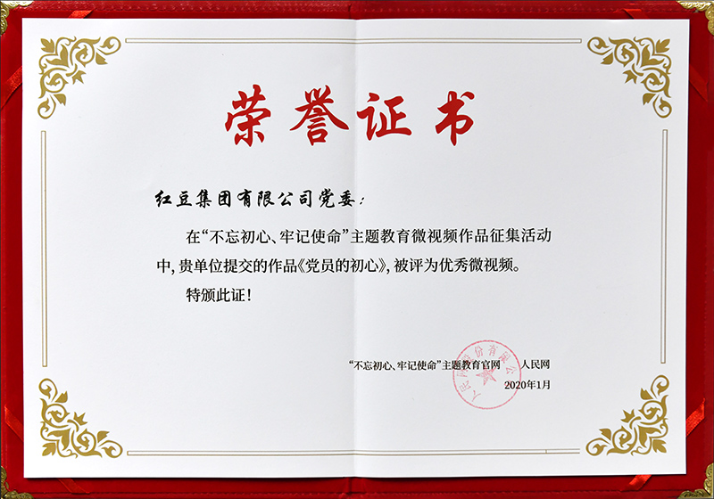 紅豆集團(tuán)參評的《黨員的初心》,經(jīng)過專家評選,網(wǎng)絡(luò)投票,從全國4000多件作品中脫穎而出,被評為50個“優(yōu)秀微視頻”作品之一,紅豆集團(tuán)也是全國唯一一家民營企業(yè)獲得此項殊榮。