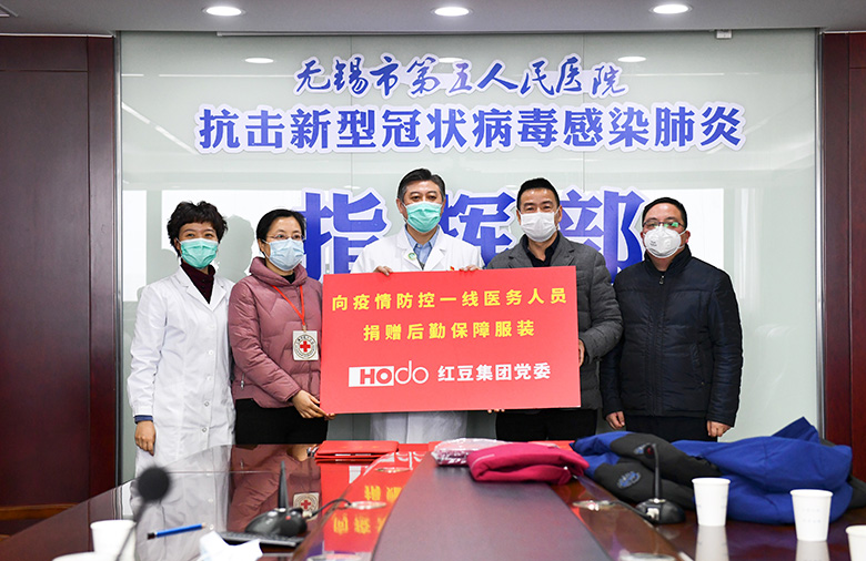集團旗下紅豆股份黨委向疫情防控一線醫務人員捐贈一批后勤保障服裝,包括200套羽絨服和500套內衣。