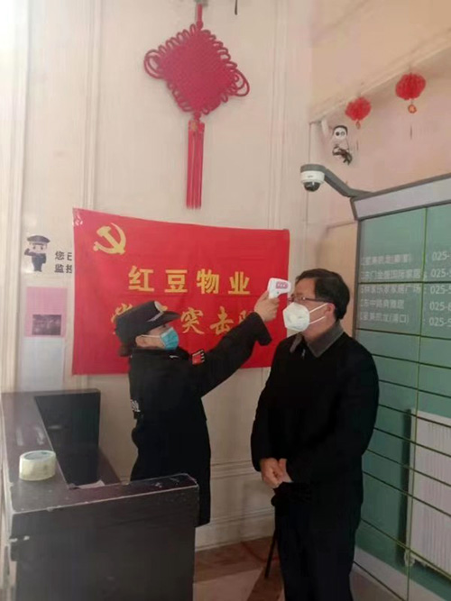 就在該集團防控的最前線——紅豆物業所管理的19個小區里,無論是黨員,還是還未入黨的員工已在各自崗位上堅守多日:小區消毒、體溫檢測、來自武漢地區相關人員的隔離、進出小區人員登記……,維護著小區業主的健康安全。