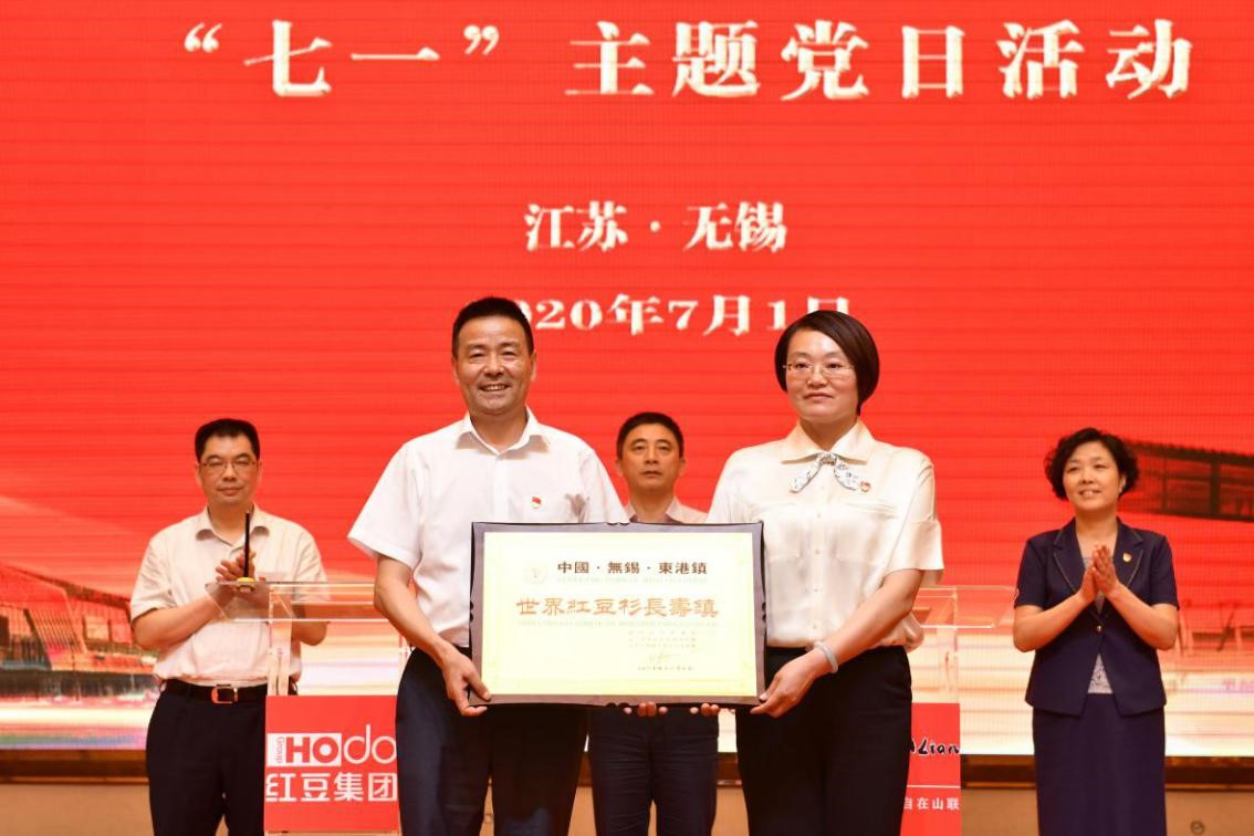 村企聯姻一家親,攜手共進助振興。 7月1日下午,紅豆集團、山聯村“黨建引領共走振興路”“七一”主題黨日活動在紅豆杉莊舉行。活動上,紅豆集團與山聯村深化結對共建正式簽約;為推動山聯村休閑、度假、康養產業發展,帶動百姓致富,紅豆集團還將“世界紅豆杉長壽鎮”品牌使用權授予山聯村。