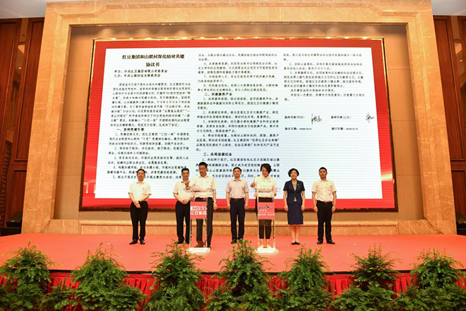 山聯村黨總支書記、村委會主任朱虹說,10多年前,山聯村就和紅豆結下深厚情緣。紅豆在山聯村大面積種植紅豆杉,使村民們就業創業、脫貧致富迎來巨大契機。與紅豆結對共建以來,山聯村主動學習紅豆黨建經驗,吸收其“八方共贏”的理念,進一步激發山聯村的黨建活力。今天,雙方深度共建,我們堅信,在省市區委的堅強領導下,村企黨建合作與鄉村振興戰略緊密結合在一起,必將推動雙方黨建水平再上新臺階,推動鄉村經濟發展再上新臺階。